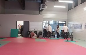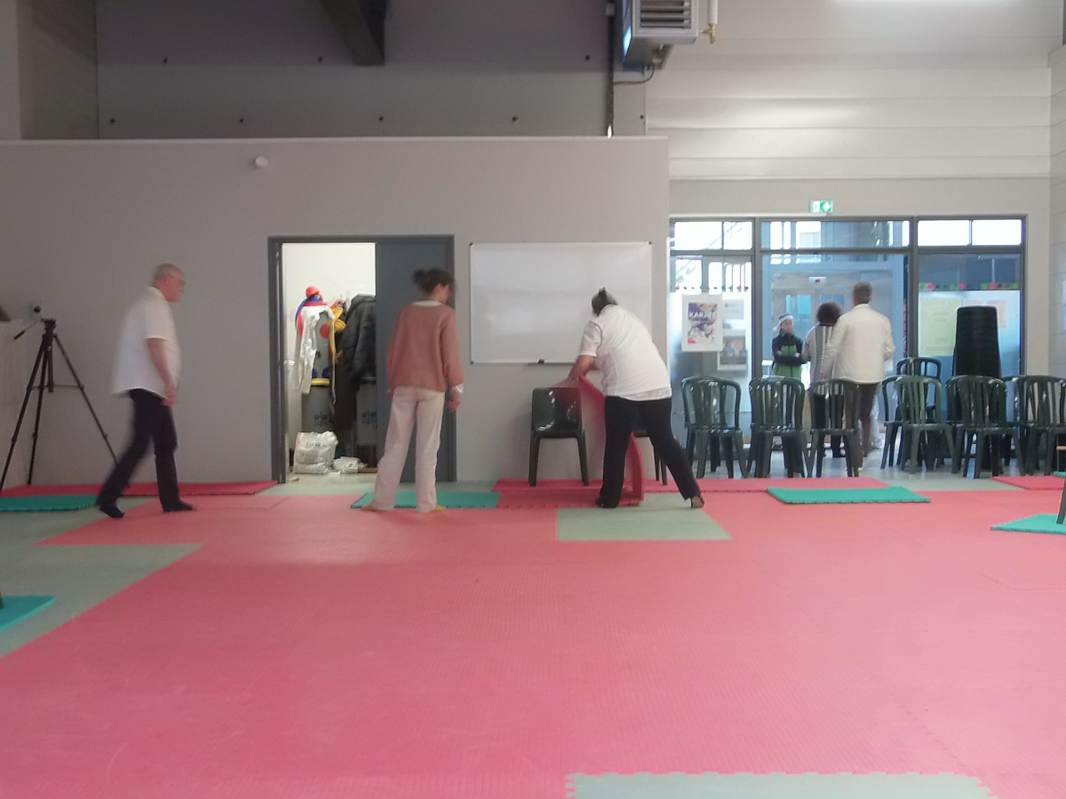 Préparation de la salle par les bénévoles de l’école